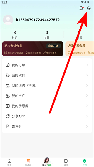 2、在個人界面,點(diǎn)擊右上角設(shè)置圖標(biāo)進(jìn)入設(shè)置頁面。