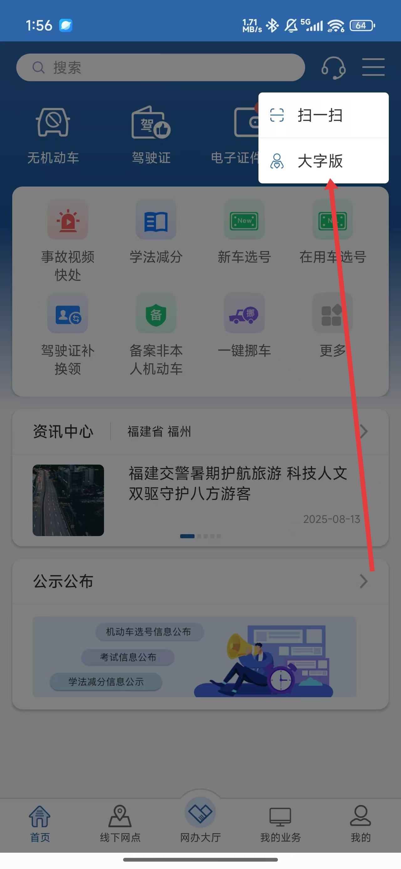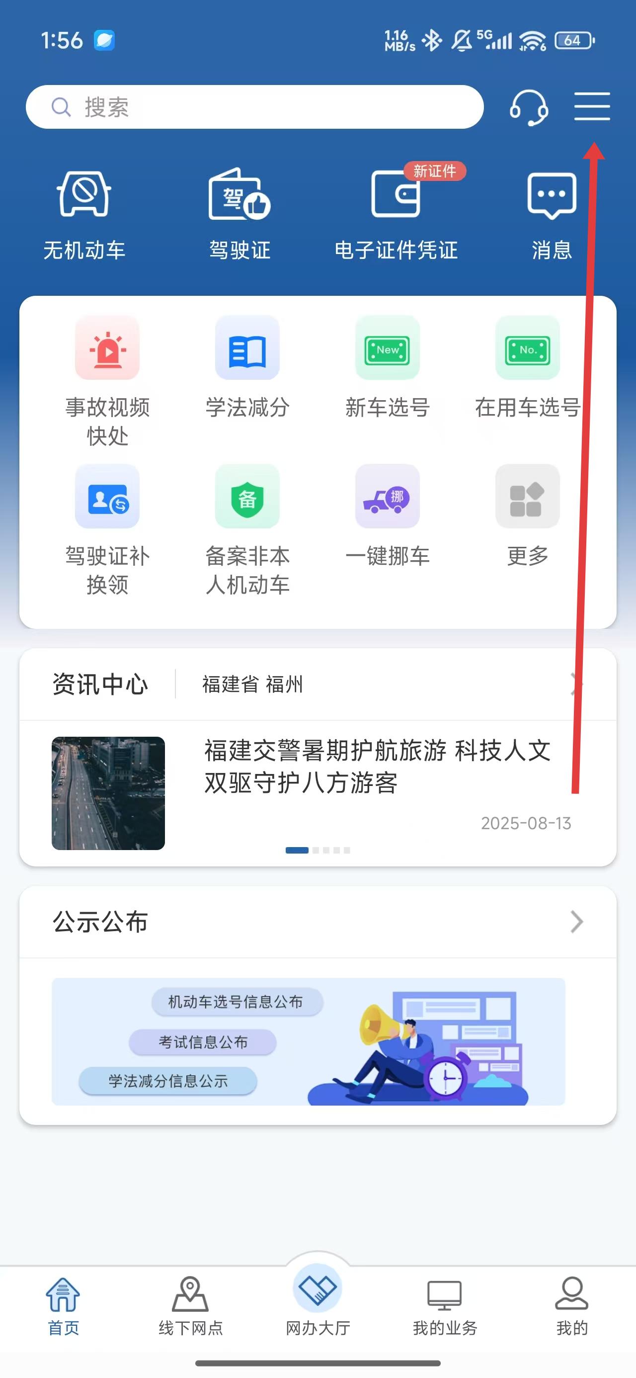 1、在交管12123主頁(yè)面中,可以點(diǎn)擊右上角按鈕展開(kāi)查看更多功能。