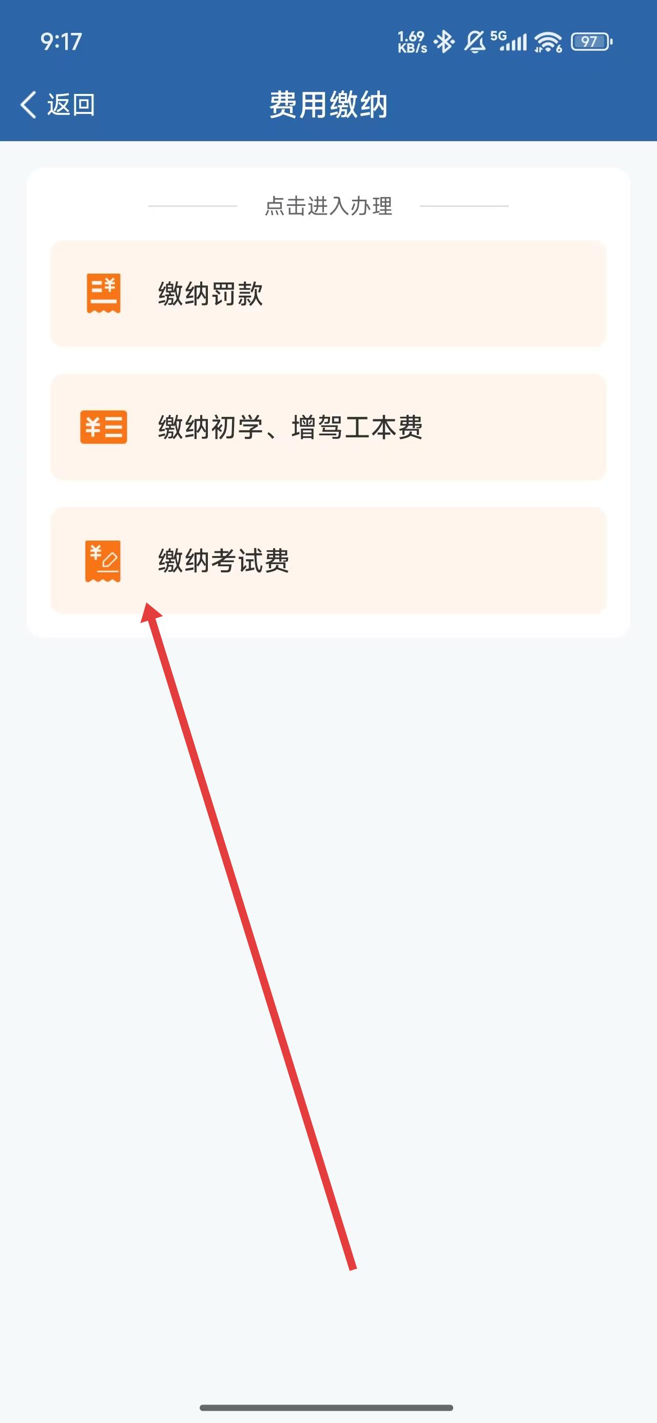 3、在費(fèi)用繳納頁面中,點(diǎn)擊繳納考試費(fèi)按鈕即可進(jìn)入辦理該業(yè)務(wù)。