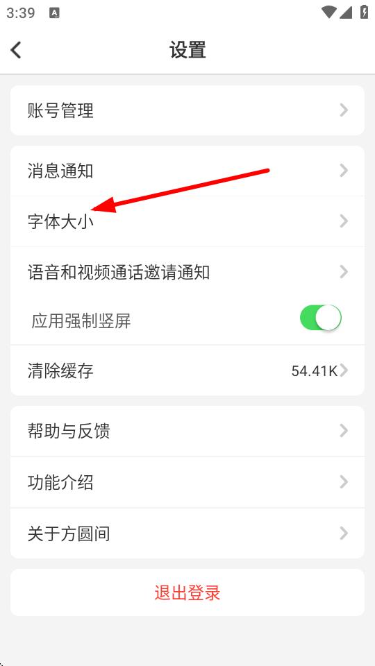 3、在設(shè)置的界面,點擊字體大小,進入字體大小設(shè)置的頁面。