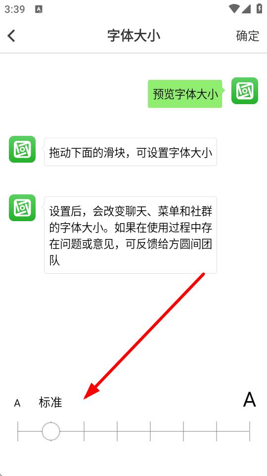4、在字體大小設(shè)置頁面,拖動滑塊調(diào)整字體大小,完成設(shè)置。