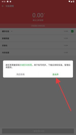 3、權(quán)限授予后,豌豆莢自動掃描手機內(nèi)的緩存垃圾、卸載殘留、安裝包等數(shù)據(jù),掃描結(jié)束后,可按需勾選清理項進行清理。