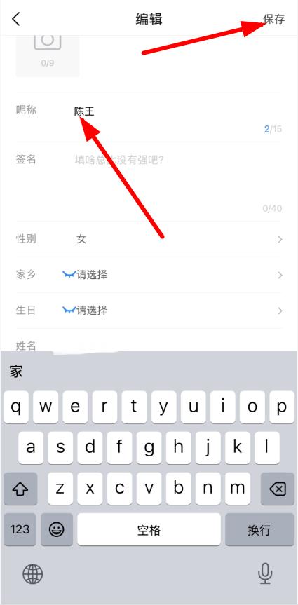 4、輸入新昵稱后,點擊保存按鈕,完成昵稱修改。