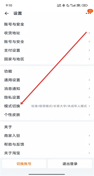 3、在進(jìn)入到設(shè)置頁(yè)面后,可以點(diǎn)擊模式切換選項(xiàng),進(jìn)行切換使用模式。