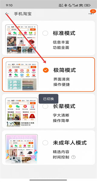 4、在模式切換頁(yè)面中,點(diǎn)擊極簡(jiǎn)模式按鈕,即可完成該模式的切換操作。
