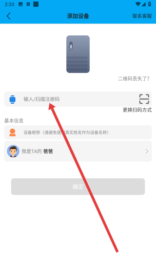 4、在添加設(shè)備頁(yè)面中,可以點(diǎn)擊輸入框填寫(xiě)車載對(duì)應(yīng)的注冊(cè)碼后完成添加操作。
