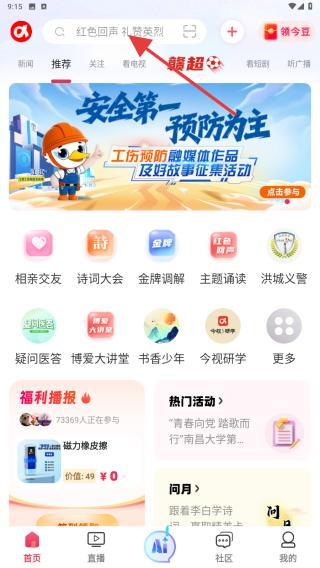 1、啟動(dòng)今視頻APP,點(diǎn)擊首頁頂部的搜索框。