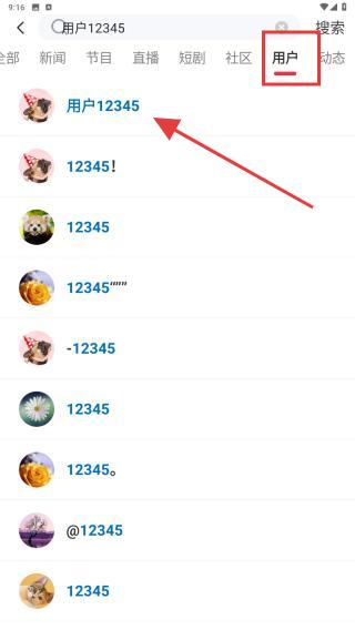 3、在搜索結(jié)果中切換到用戶的標(biāo)簽,找到目標(biāo)用戶并點(diǎn)擊進(jìn)去。