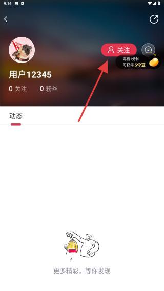 4、在個(gè)人主頁點(diǎn)擊關(guān)注按鈕,即可關(guān)注并添加該用戶。