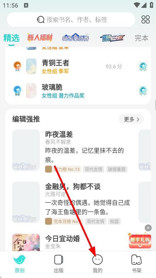 1、打開豆瓣閱讀APP,點擊底部導(dǎo)航欄中的我的選項。