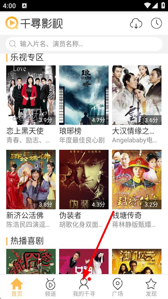 1、打開(kāi)千尋影視app,點(diǎn)擊底部導(dǎo)航欄中間的我的千尋選項(xiàng)。