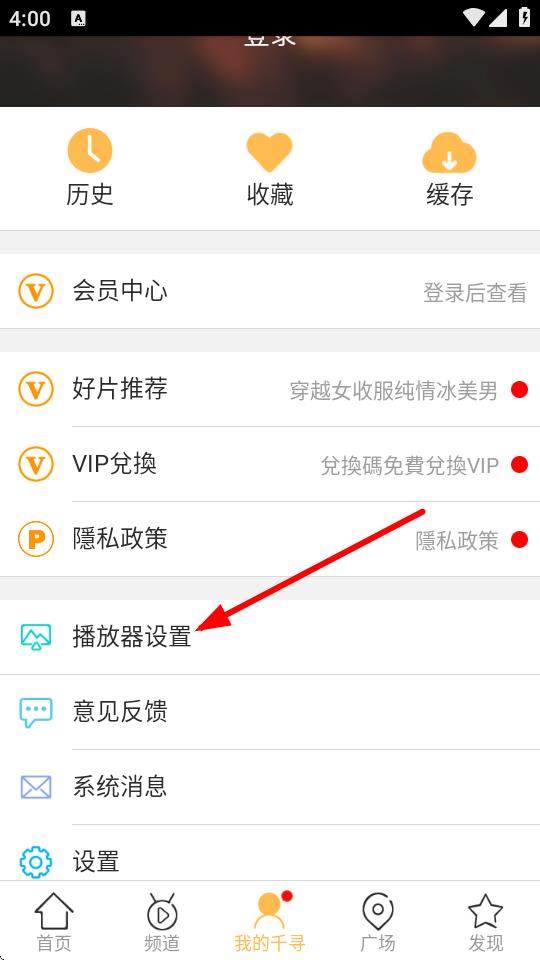 2、在我的千尋頁(yè)面中,找到并點(diǎn)擊播放器設(shè)置選項(xiàng)。