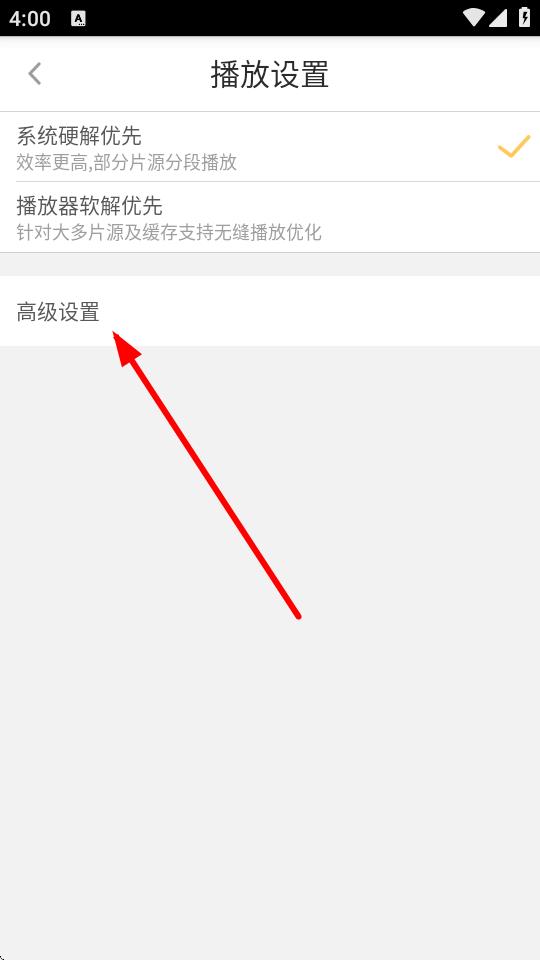 3、進(jìn)入播放設(shè)置頁(yè)面后,點(diǎn)擊高級(jí)設(shè)置選項(xiàng)。