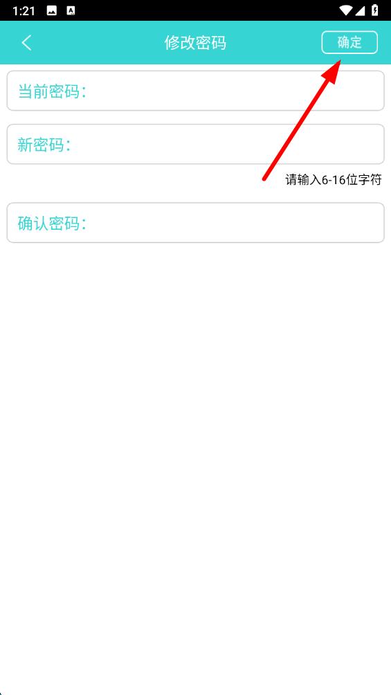 4、在修改密碼界面,依次輸入當(dāng)前密碼、新密碼、確認(rèn)密碼,然后點(diǎn)擊右上角的確定按鈕,完成密碼修改。