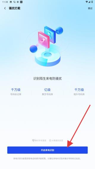 2、進入騷擾攔截頁面后,點擊底部開始來電控制按鈕,若系統(tǒng)彈出權(quán)限申請,需點擊允許完成授權(quán),否則攔截功能無法生效。