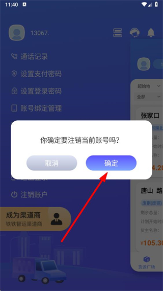 3、在確認(rèn)框中點(diǎn)擊確定按鈕,即可完成賬號(hào)注銷操作。