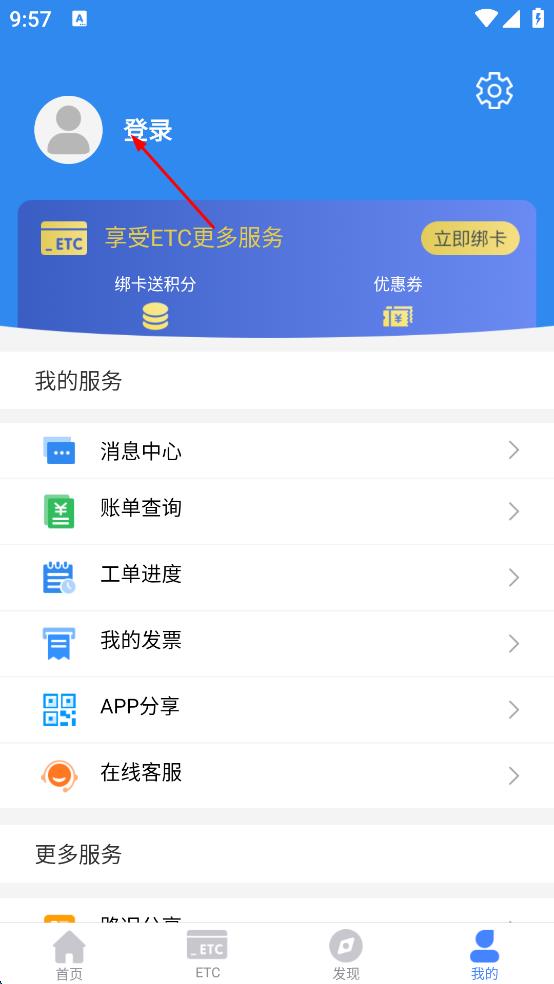 3、進入我的頁面,在頁面上方找到登錄選項,點擊登錄。