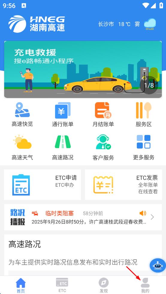 2、進入湖南高速主界面,在界面下方找到我的選項,點擊我的。
