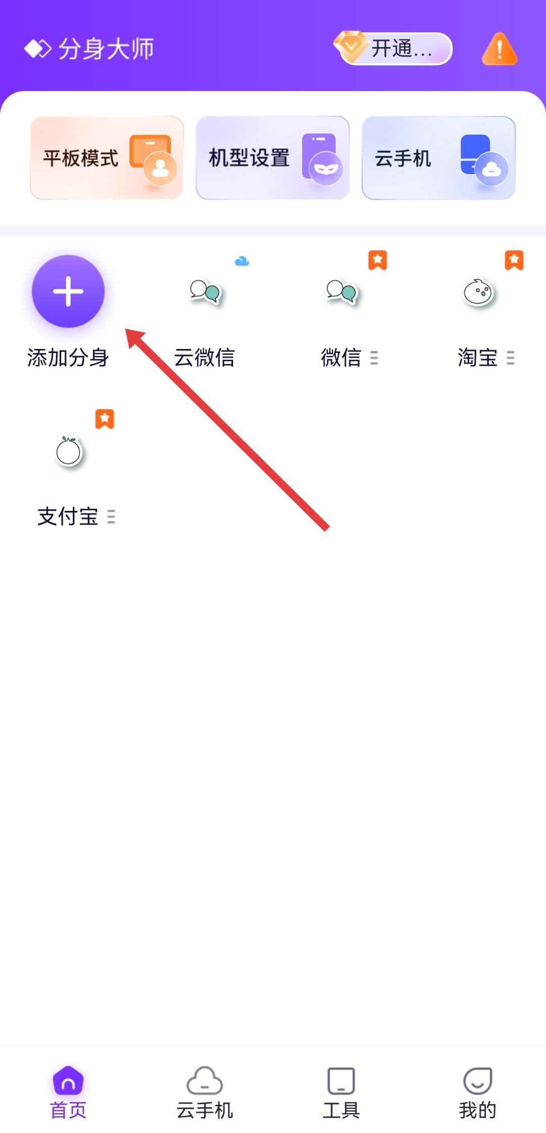 1、在分身大師主界面,點(diǎn)擊左側(cè)添加分身按鈕,進(jìn)入添加分身的應(yīng)用選擇頁面。
