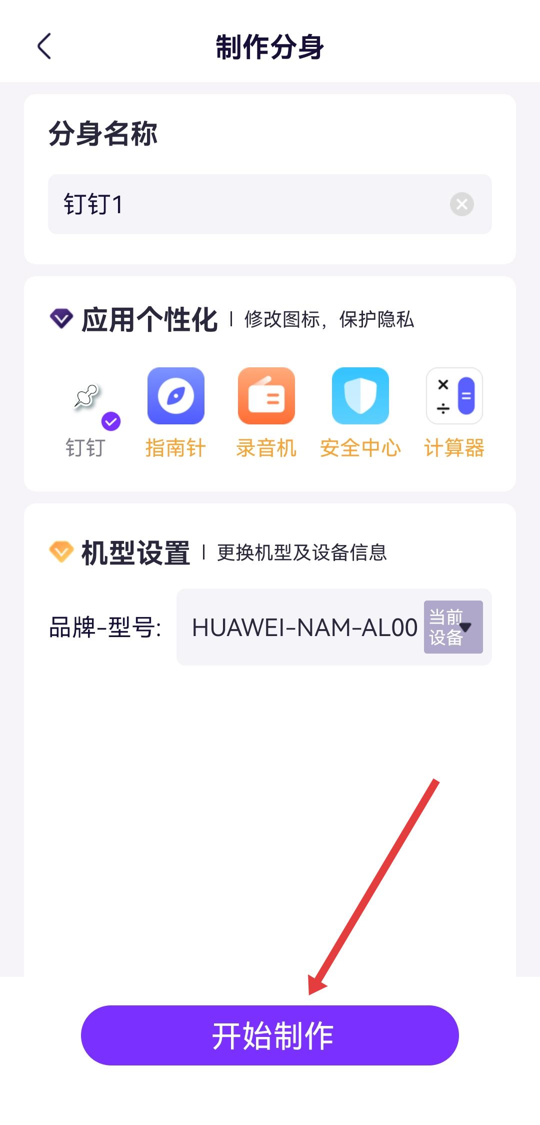 3、進(jìn)入制作分身頁面后,設(shè)置分身名稱等,然后點(diǎn)擊底部開始制作按鈕。