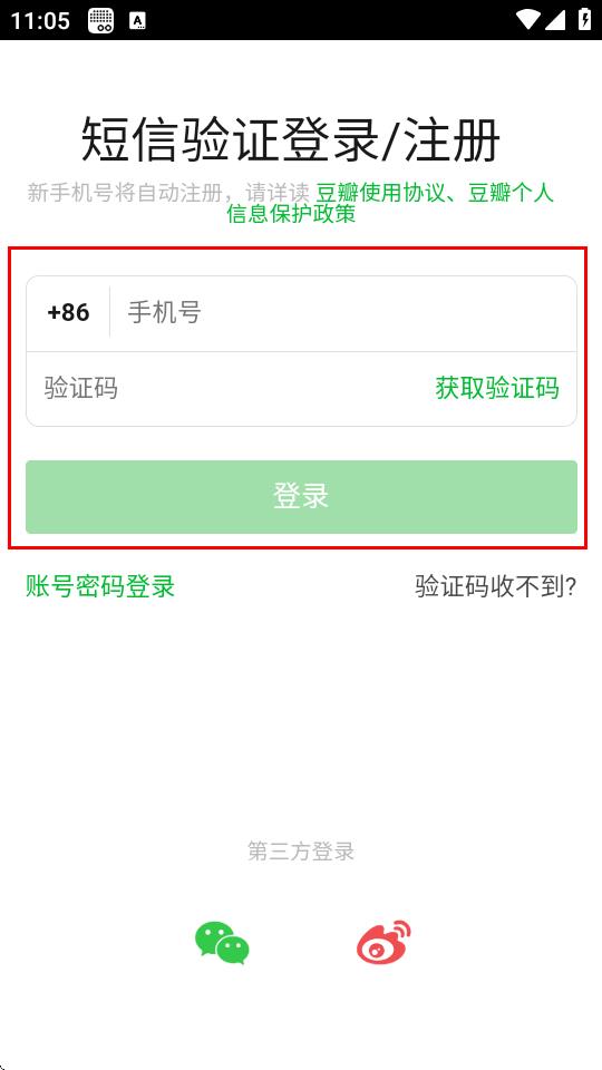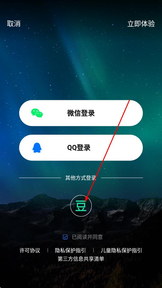 3、在登錄頁面,點(diǎn)擊下方的其他方式登錄,找到并點(diǎn)擊豆瓣圖標(biāo)。