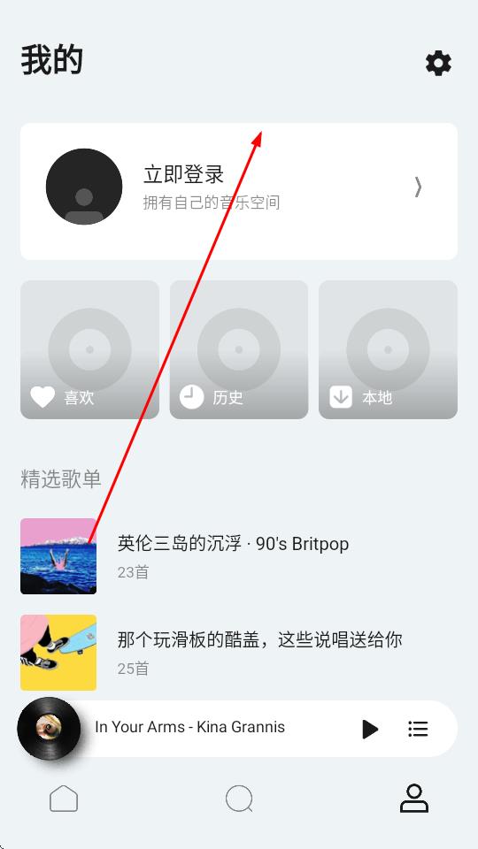 2、在我的頁面中,點(diǎn)擊右上方的設(shè)置圖標(biāo),然后點(diǎn)擊立即登錄選項(xiàng)。