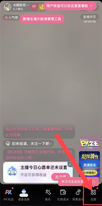 尊享大航海艦隊(duì),超強(qiáng)粉絲團(tuán),開(kāi)啟你的專享粉絲艦隊(duì) ;大亂斗、天選抽獎(jiǎng)、語(yǔ)音連麥,一起直播一起high;超強(qiáng)彈幕互動(dòng)體驗(yàn)、獨(dú)特禮物效果, 打造屬于你的打賞空間。