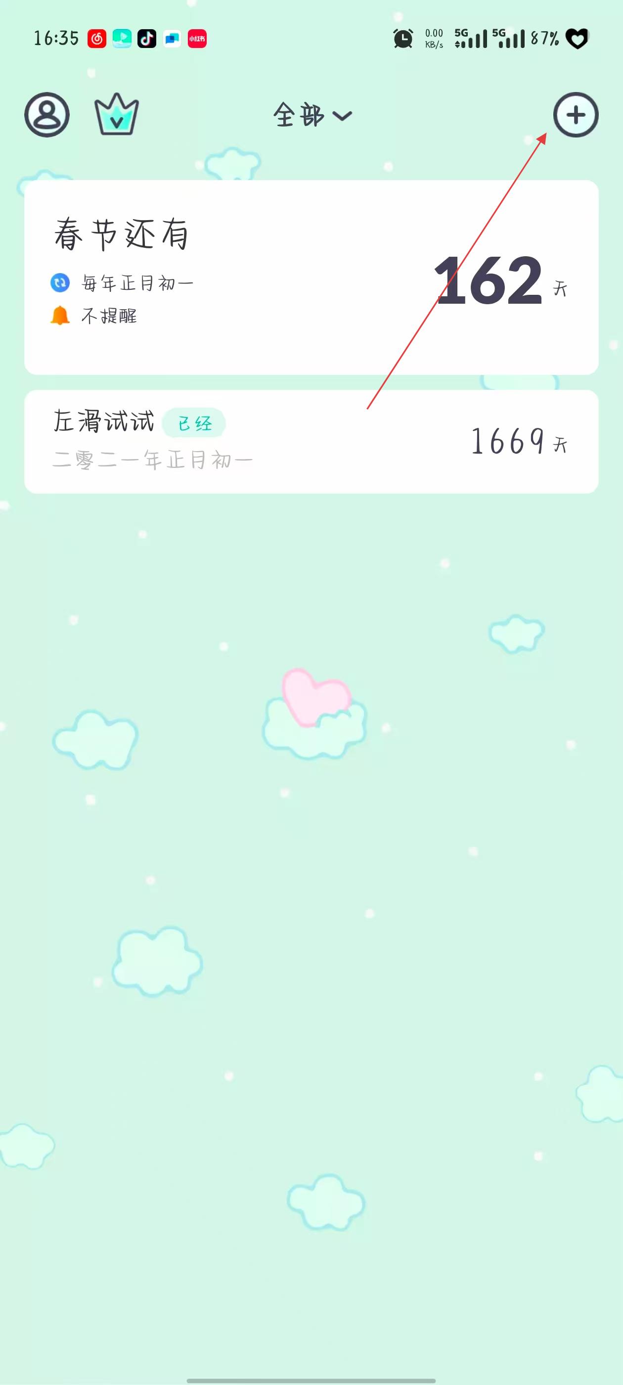 4、保存之后即可在APP主界面看到該事件的倒計時卡片,實時查看剩余天數。