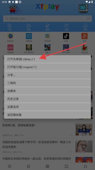 2、在彈出的菜單中,用戶需找到并點擊先鋒鏈接的選項。