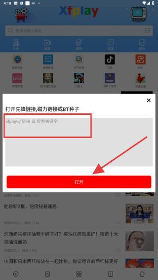 3、在彈出的輸入框中,粘貼或輸入需要打開的協(xié)議鏈接,然后點擊打開按鈕,即可開始加載鏈接內(nèi)容。