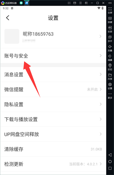 3、然后進(jìn)入設(shè)置界面,在這里找到【賬號(hào)與安全】功能選項(xiàng)并點(diǎn)擊;