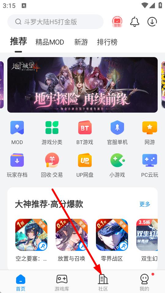 1、打開(kāi)八門(mén)神器應(yīng)用,點(diǎn)擊底部導(dǎo)航欄中的社區(qū)選項(xiàng)。