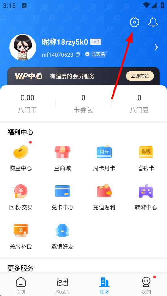 2、在社區(qū)頁(yè)面右上角,點(diǎn)擊設(shè)置圖標(biāo)進(jìn)入設(shè)置界面。