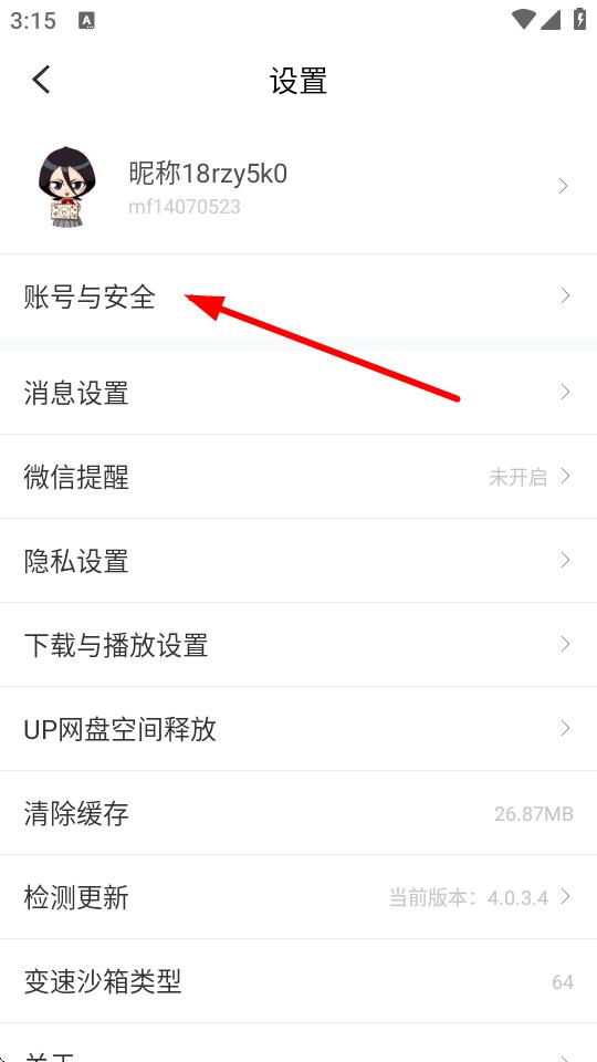 3、在設(shè)置界面里,點(diǎn)擊賬號(hào)與安全選項(xiàng)。