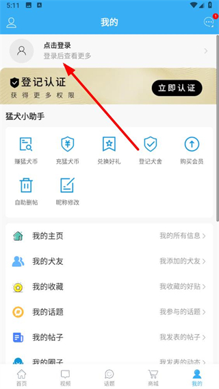2、在我的頁面,在上方底部點擊登錄區(qū)域。