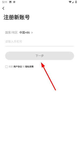 4、在注冊新賬號頁面,選擇國家地區(qū),輸入手機(jī)號,勾選同意協(xié)議后,按照提示完成賬號注冊操作。