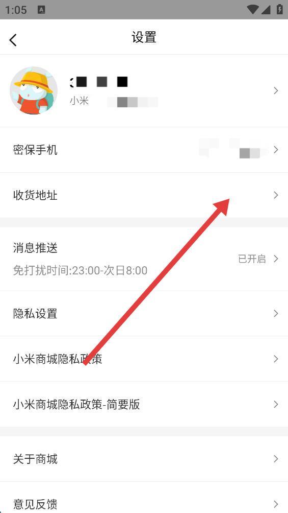 3、在設(shè)置界面里,找到并點擊收貨地址選項。
