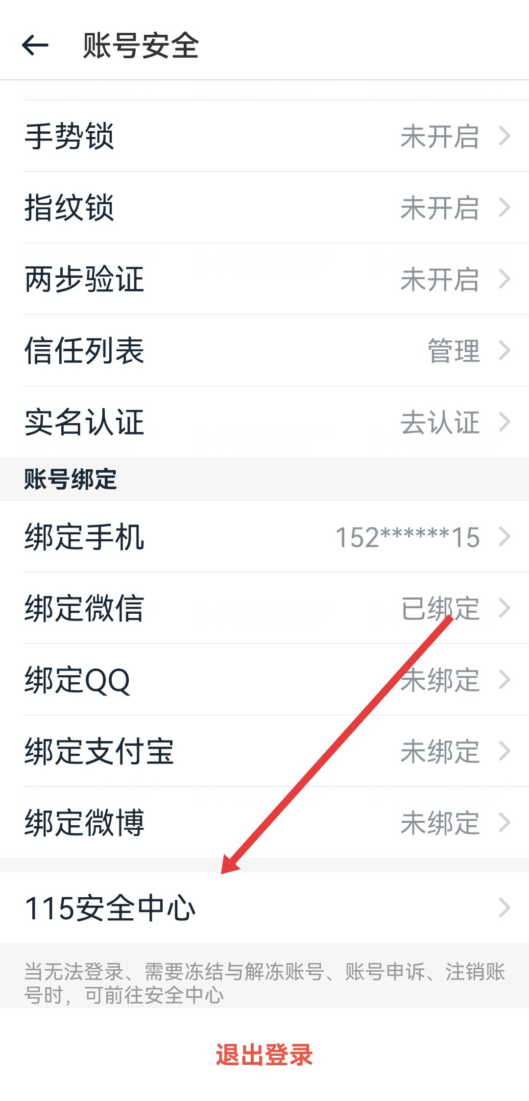 2、在賬號(hào)安全頁面中,點(diǎn)擊115安全中心選項(xiàng),進(jìn)入安全中心頁面。