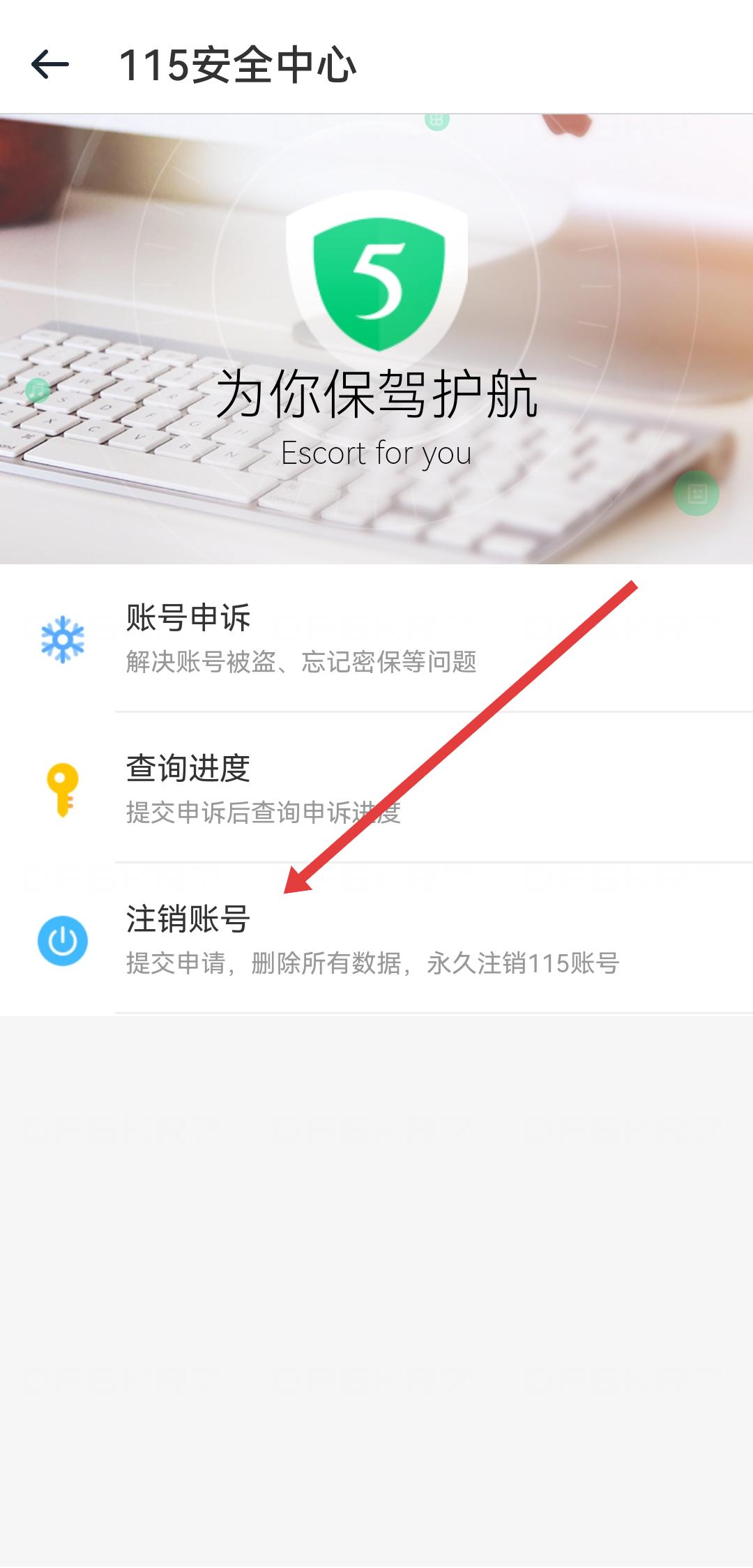 3、在115安全中心的頁面,點(diǎn)擊注銷賬號(hào)選項(xiàng),進(jìn)入賬號(hào)注銷申請界面。