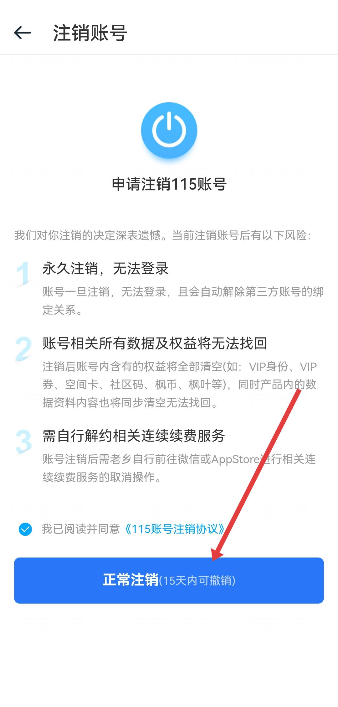 4、在注銷賬號(hào)的頁面,勾選我已閱讀并同意注銷協(xié)議,然后點(diǎn)擊正常注銷按鈕,提交賬號(hào)注銷申請。