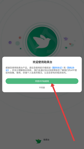 1、可以通過點擊同意并開始使用按鈕,進入到應(yīng)用中開始使用。