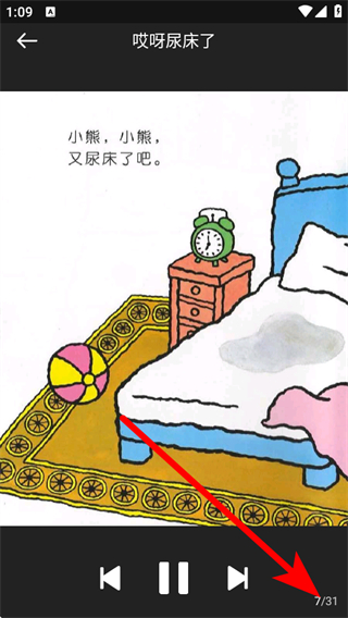 4、在播放過程中,可點擊翻頁按鈕或查看頁碼,瀏覽不同頁面完成繪本查看操作。