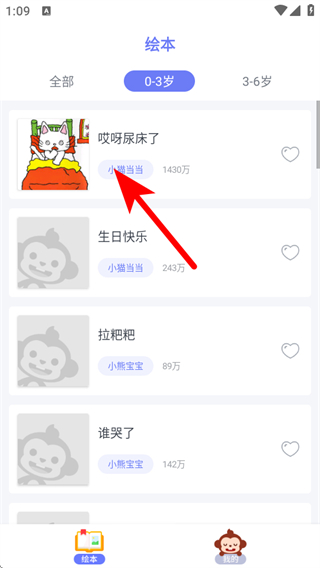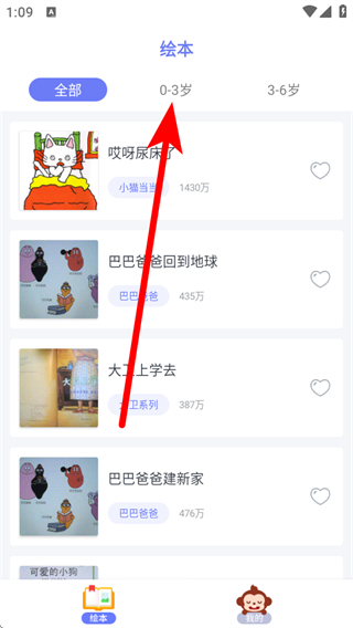 1、在繪本app繪本頁面,點擊0-3歲選項,進(jìn)入對應(yīng)年齡段繪本列表界面。