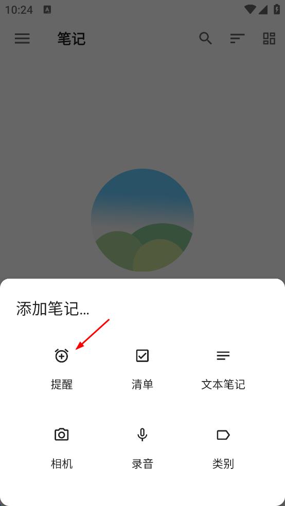 2、在添加筆記選項(xiàng)框中,點(diǎn)擊“提醒”,進(jìn)入提醒編輯頁面。