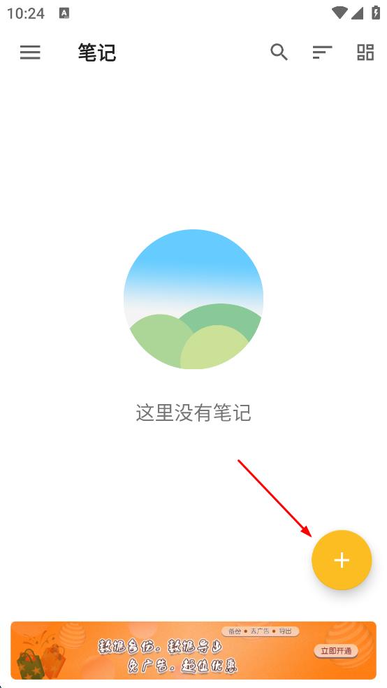 1、打開筆記軟件,進(jìn)入筆記頁面,點(diǎn)擊右下角黃色“+”按鈕,彈出添加筆記選項(xiàng)框。