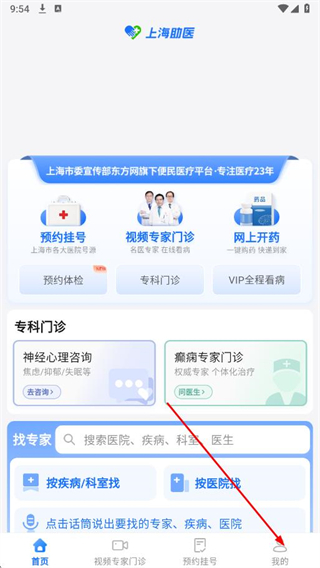 1、打開上海助醫(yī)APP,點擊導(dǎo)航欄中的我的。