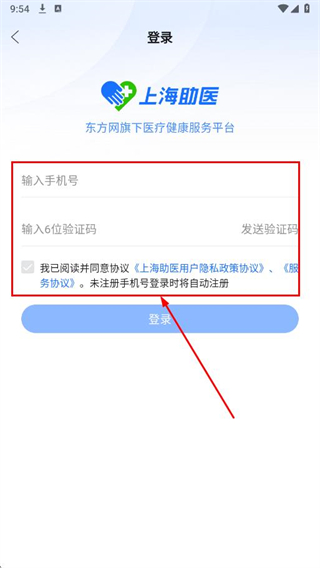 3、輸入手機號,點擊發(fā)送驗證碼并填入,勾選協(xié)議,點擊登錄,自動完成注冊流程。