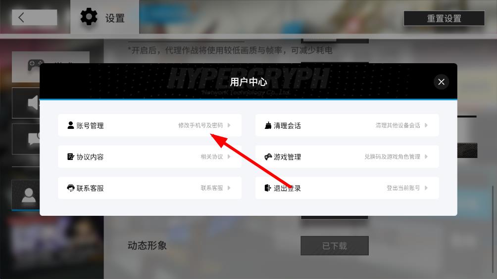 3、在用戶中心窗口里點擊賬號管理后的修改手機號及密碼選項,進入賬號管理頁面。