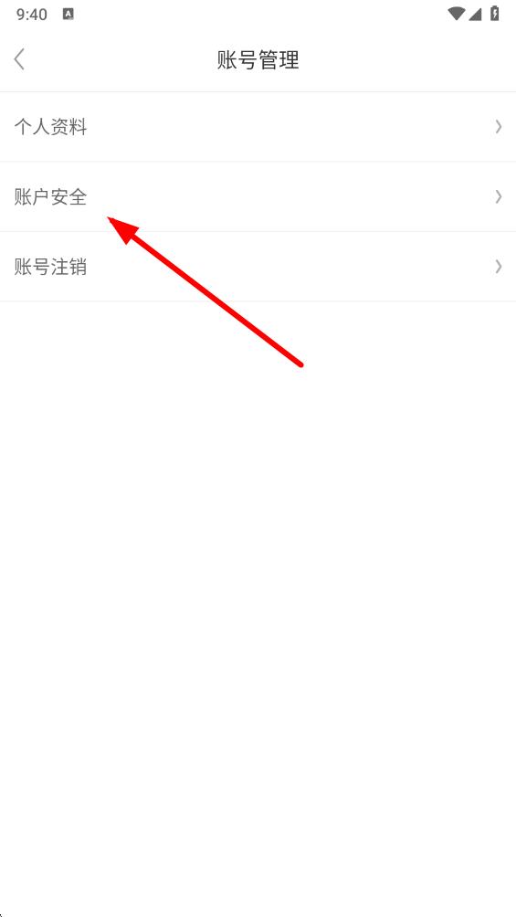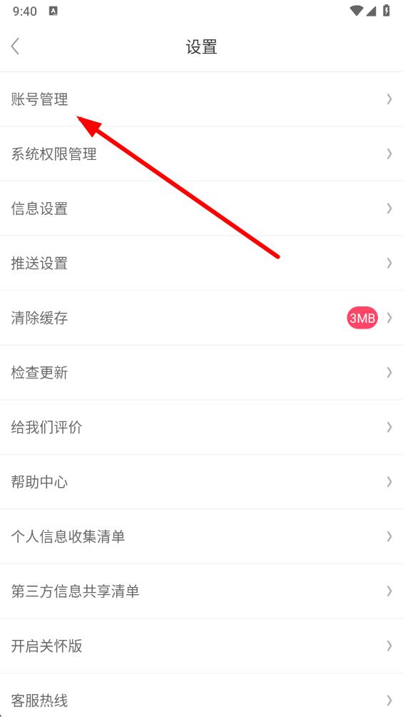 2、在設置界面里,點擊賬號管理選項,進入賬號管理頁面。