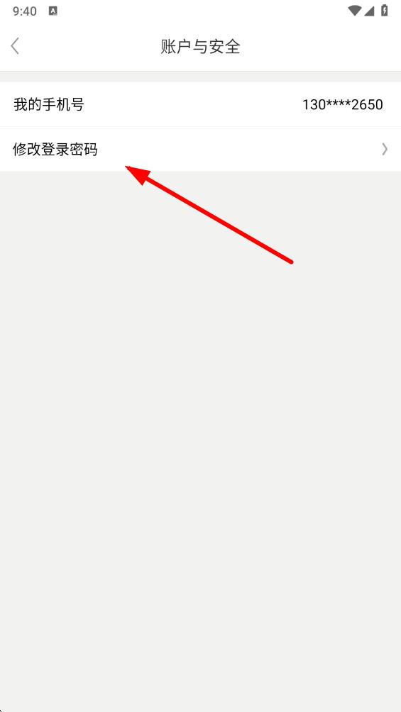 4、在賬戶與安全頁面,點擊修改登錄密碼選項,進入修改密碼頁面。